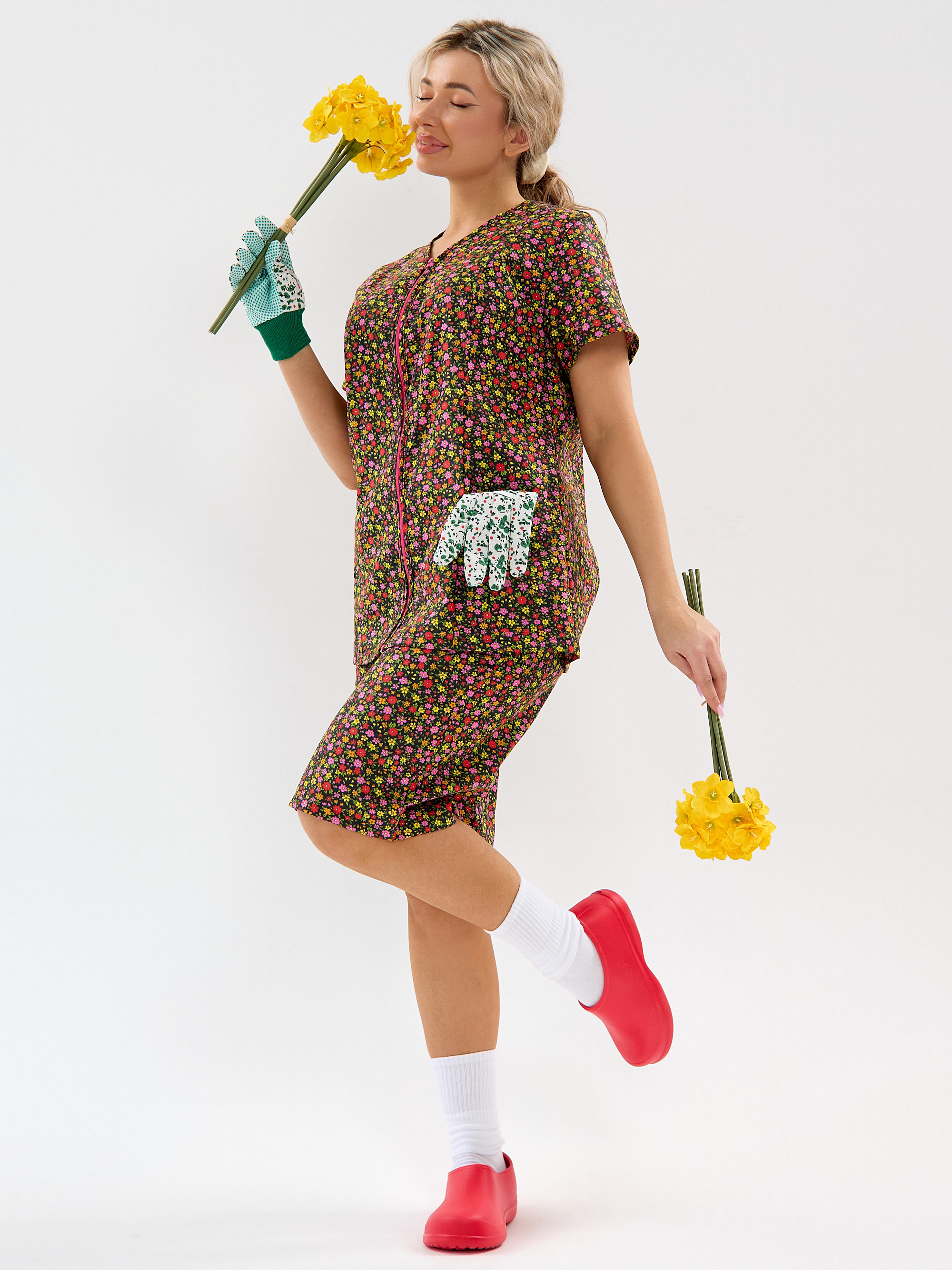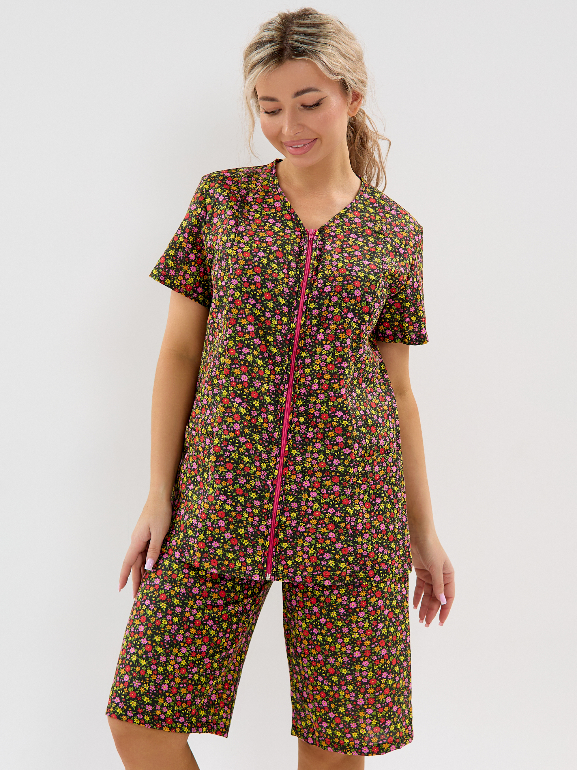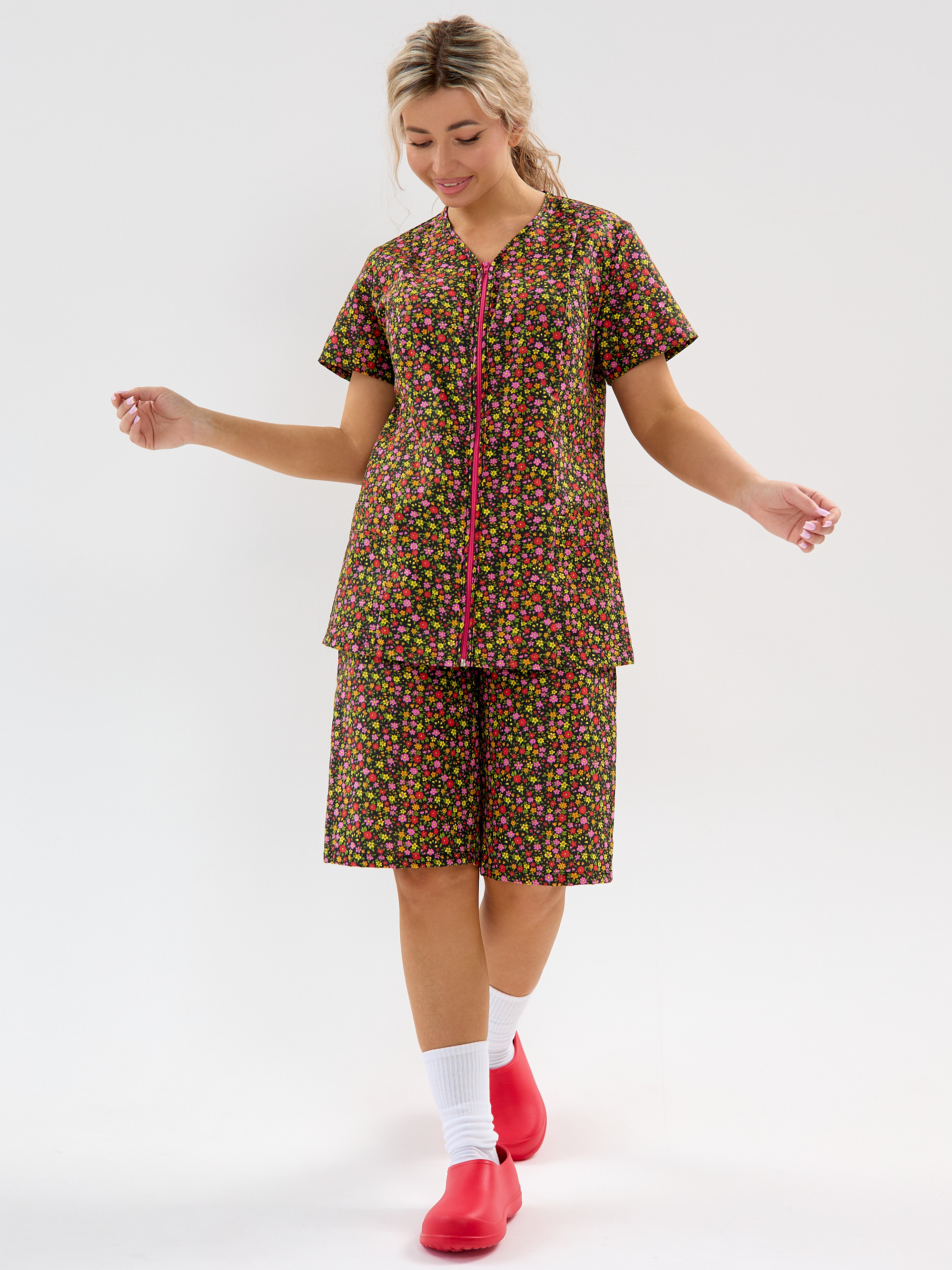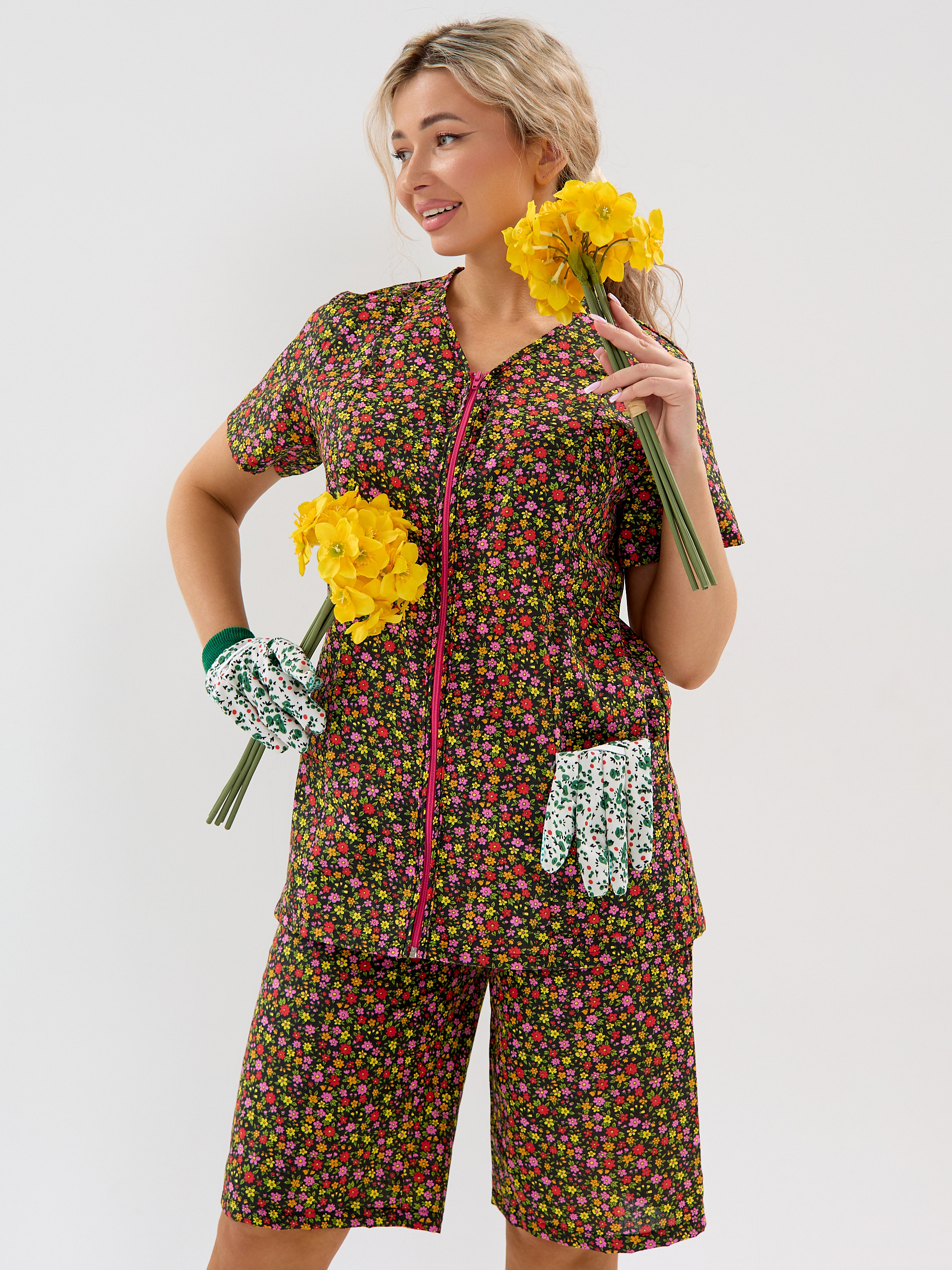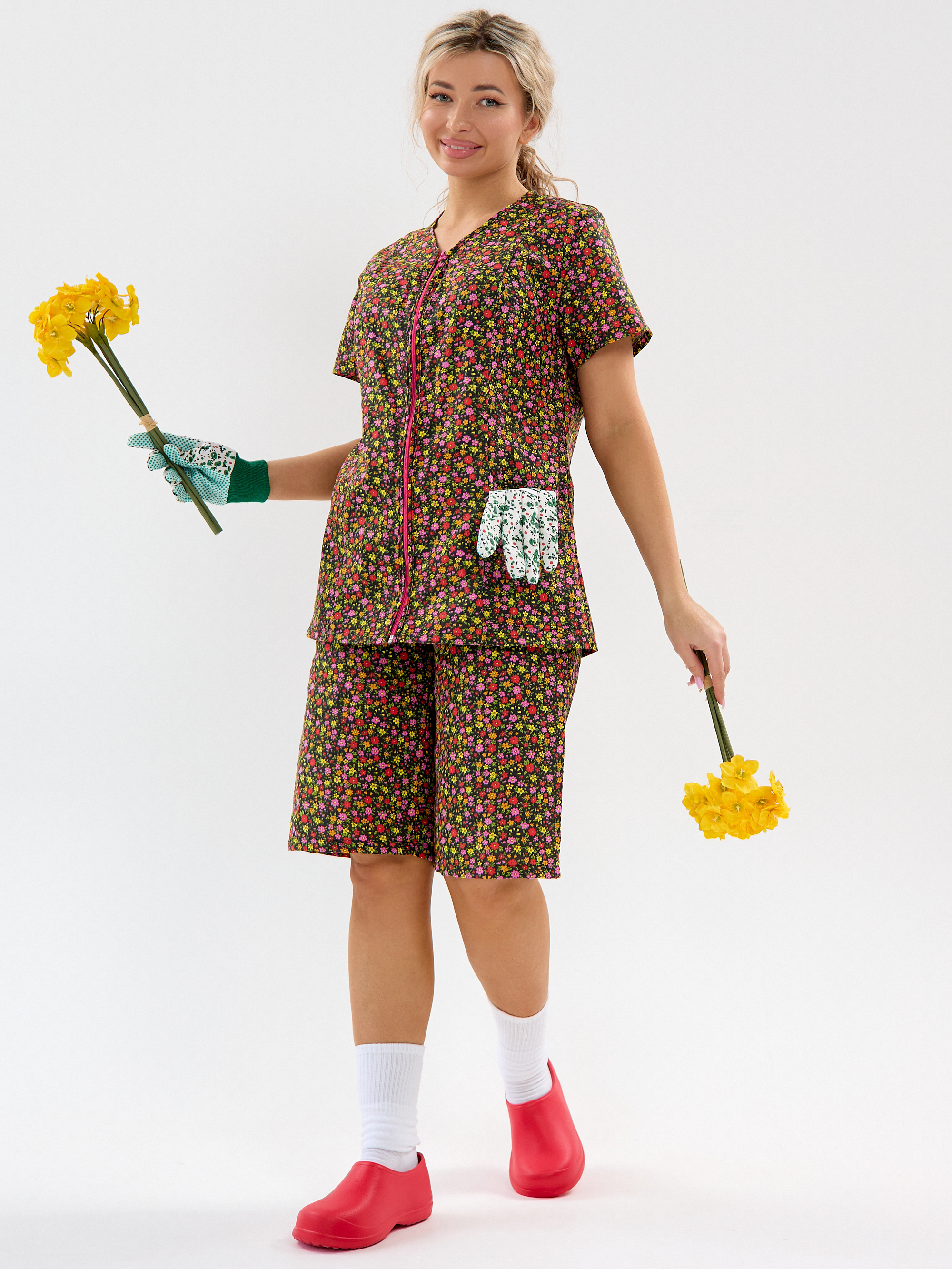 Женский дачный костюм из бязи, кофта на молнии с коротким втачным рукавом и карманами, шорты ниже колена на резинке. Натуральный 100% хлопок, дышащая ткань, тело будет дышать даже в самый жаркий день, свободный крой не будет сковывать движений. Яркий принт красные маки подчёркивает женственность. Идеален для дачи, огорода, дома, отдыха на природе, а также для путешествий и поездок на море. Шорты с комфортной посадкой поэтому будет удобно наклоняться и работать в огороде. Костюм домашний бязевый подходит для дел по дому, уборки и отдыха. В глубокие практичные карманы поместятся семена, перчатки, пара морковок «на перекус» и даже телефон с ключами, а также разные мелочи. Костюм женский летний прост в уходе, бязь устойчива к частым стиркам, хорошо держит форму.