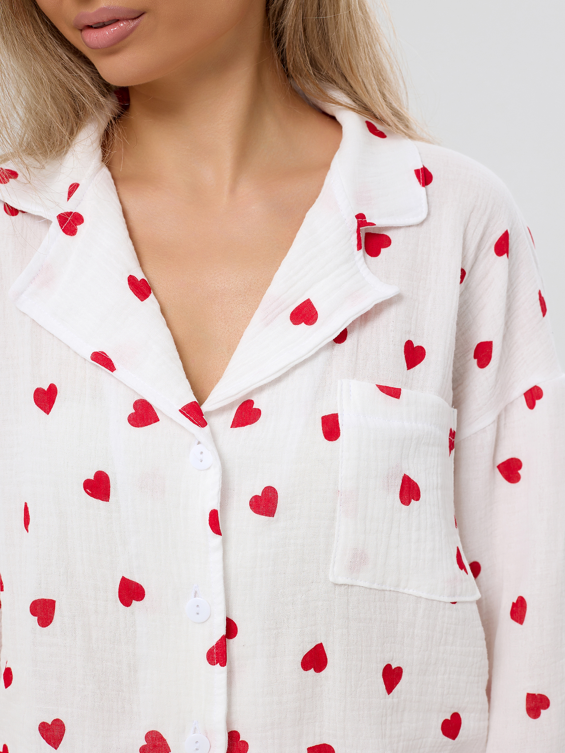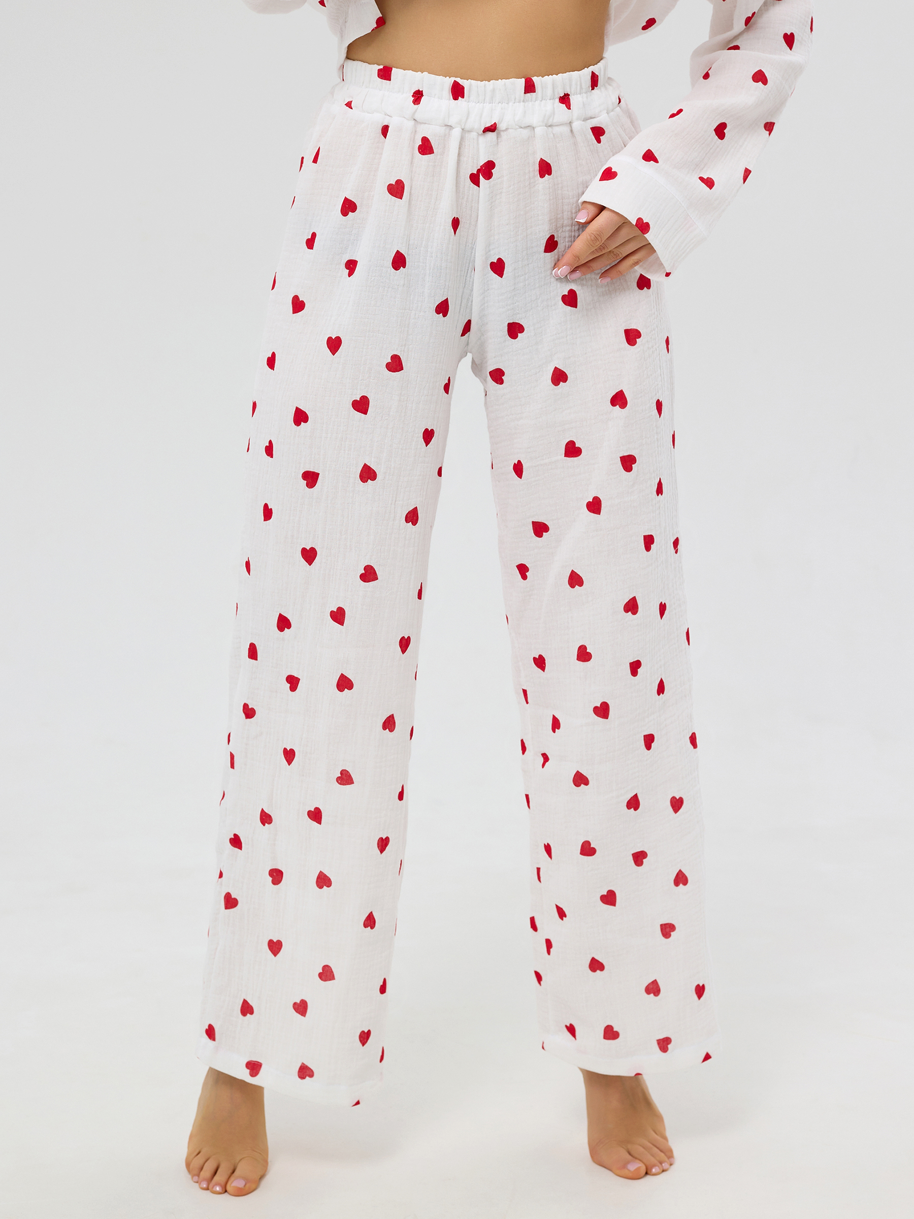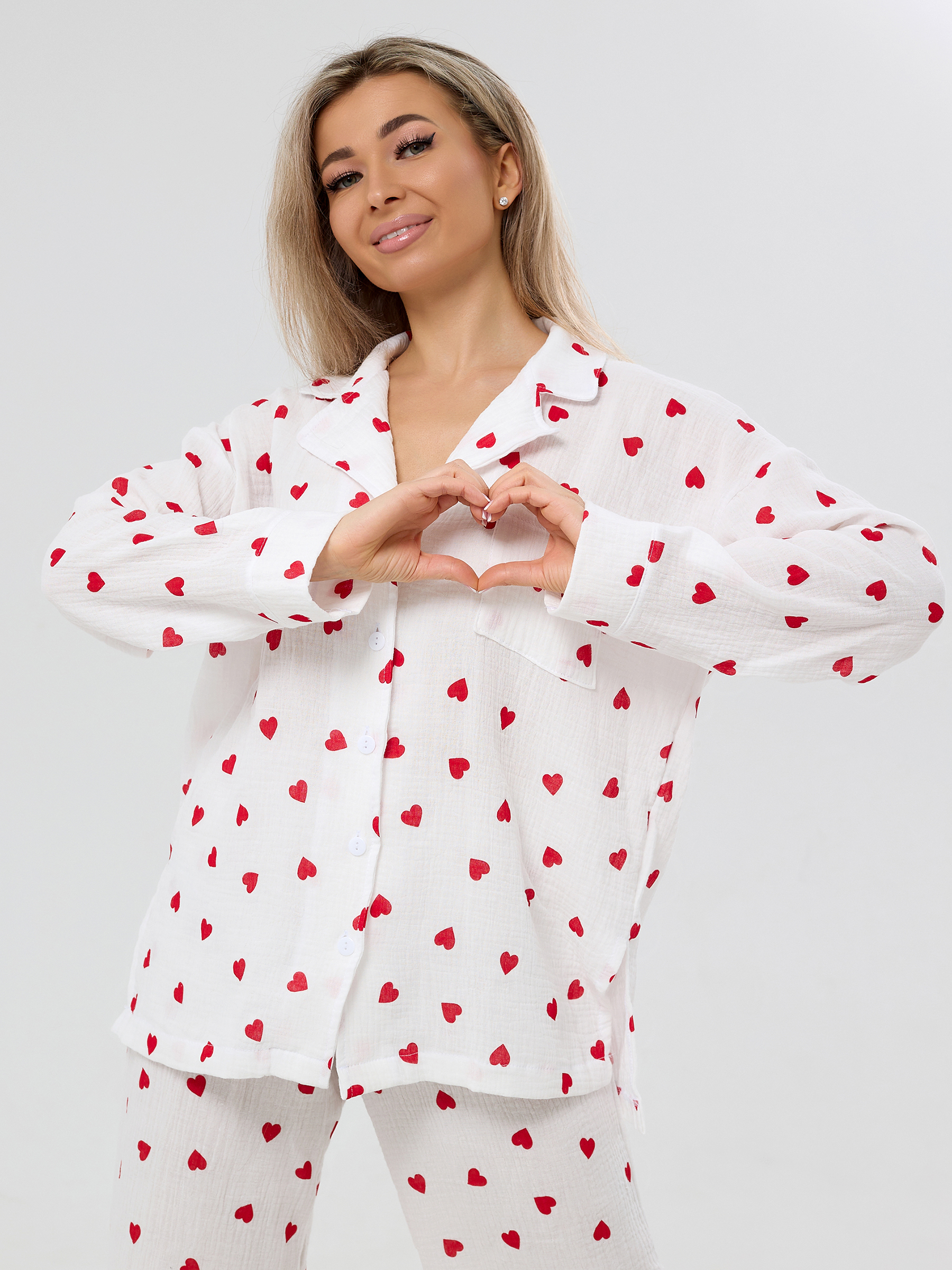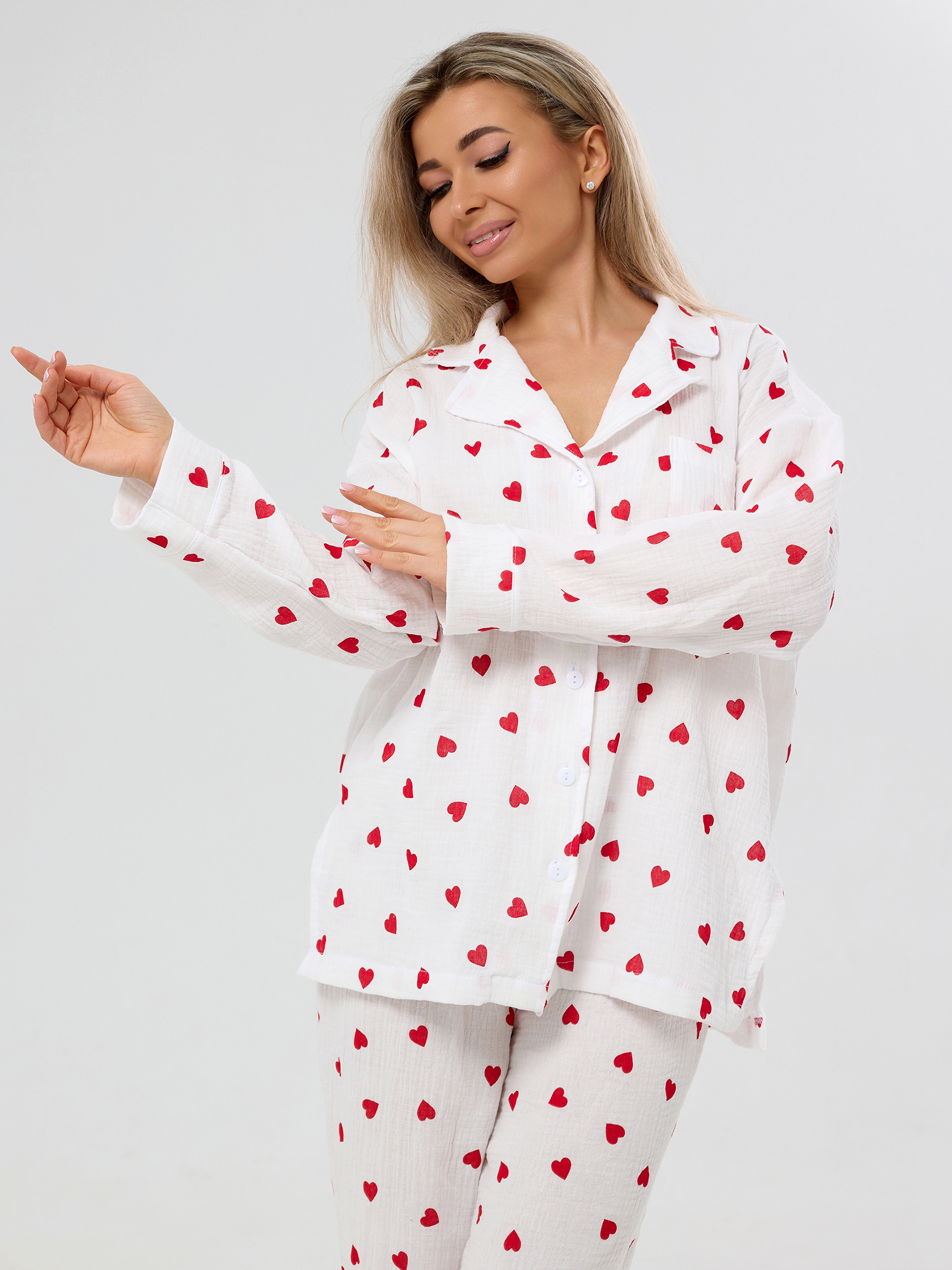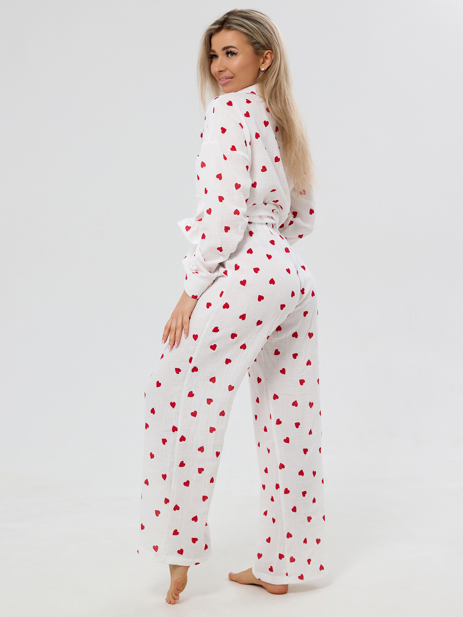 РАСЦВЕТКА КАК НА ФОТО Пижама женская со штанами. Выполнена из мягкого материала муслин, 100 % хлопок. Пижамный комплект мягкий и приятный к телу.